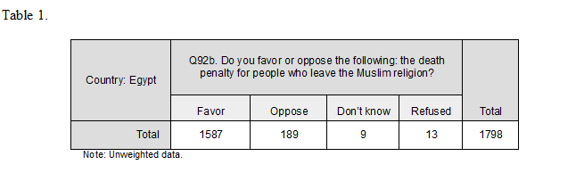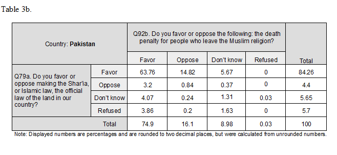 DeleteI take responsibility for my error in not finding the information on the general Muslim opinion on apostasy, but at the same time it's fair (as you appear to agree) to point out how Pew made the error easy to commit. Any stated reference in the report to the attitudes of Muslims generally to the death penalty for apostasy would have cued readers to the existence and importance of Q92b.