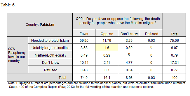 To paraphrase you, that's no excuse for the Pew researchers making its treatment of the apostasy issue needlessly vague. In a report on the attitudes of the general Muslim population one should be able to look at the section on the death penalty for apostasy and find information relating to the general attitude of Muslims. Anything else is an insult to the commonly understood organizational principles of expository writing.